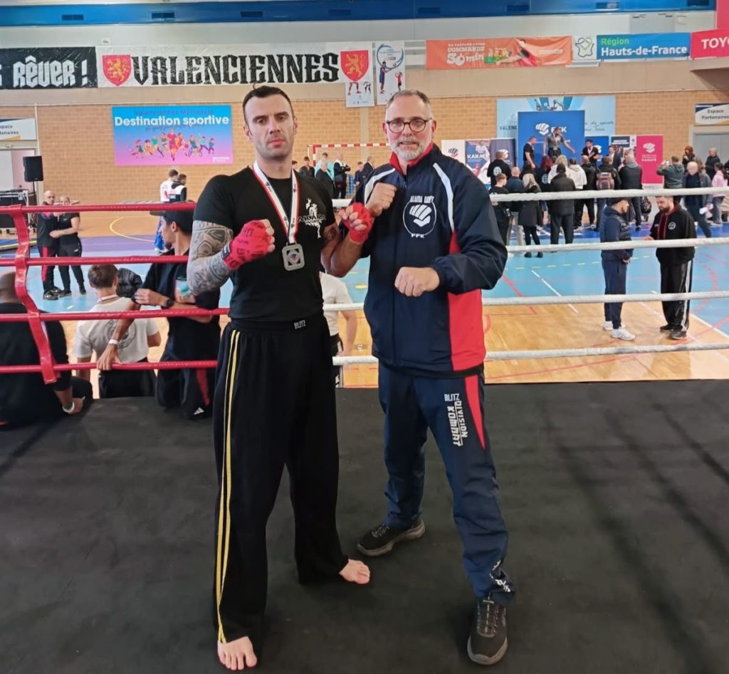 Yacine Brihmouche gagne 3 combats dont 1 par KOTC et remporte la Coupe de France de FULL CONTACT en séniors moins de 60kg.